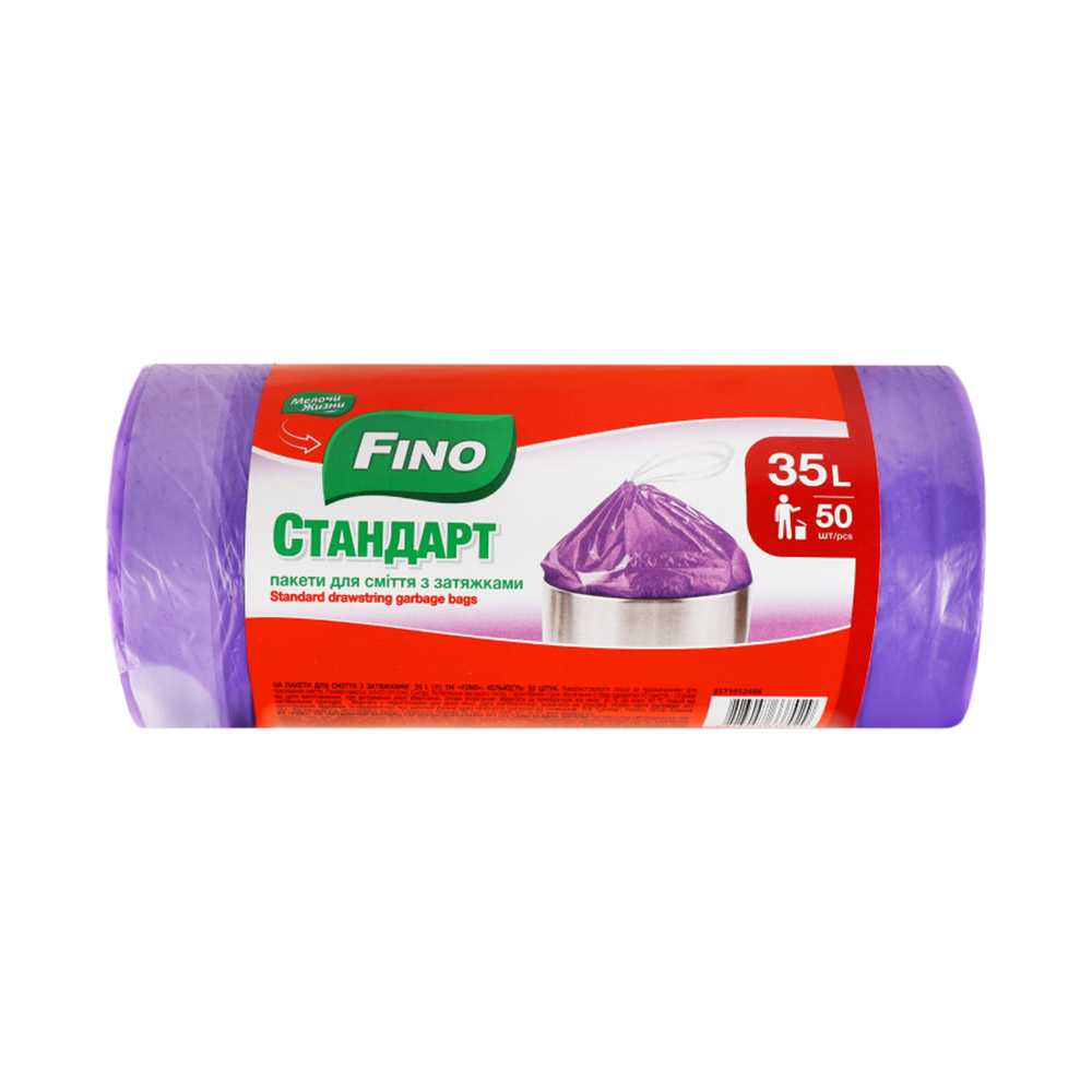 Пакети д/сміття Fino з затяжками 50шт*35л