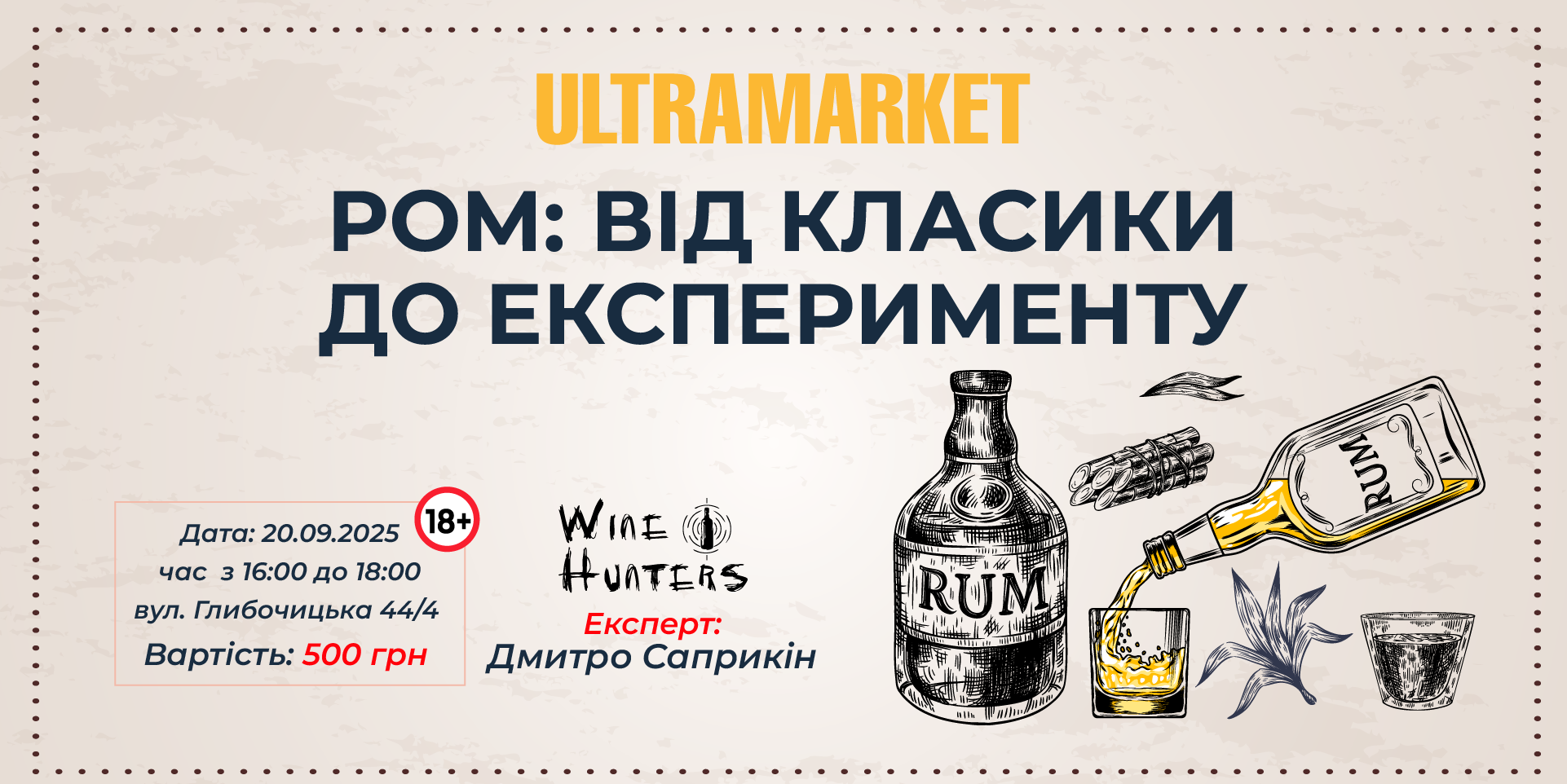 Маємо чудову новину! 20 вересня разом із @winehunters влаштовуємо дегустацію — і з радістю запрошуємо вас приєднатися! Зануримосьу світ рому з різних країн разом із експертом Дмитром Саприкіним. Будуть представлені ...