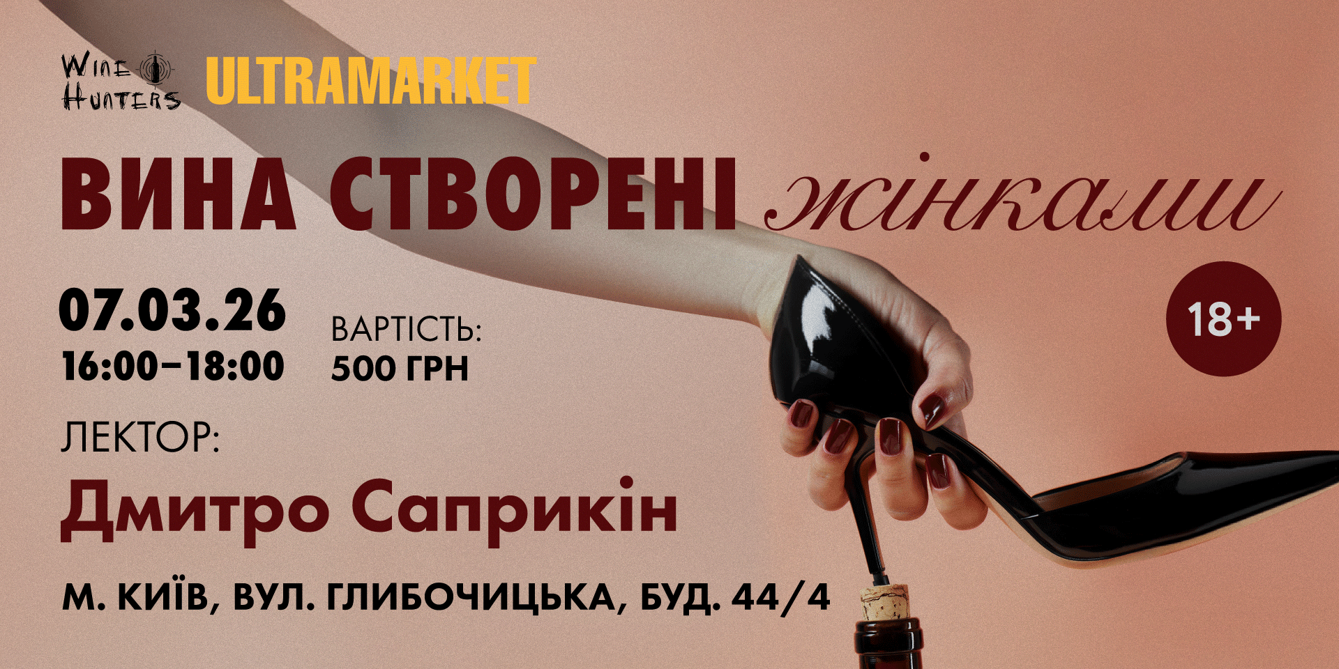 7 березня ULTRAMARKET разом із Wine Hunters та експертом Дмитром Саприкіним запрошують вас на дегустацію, присвячену ролі жінок у винній індустрії. Говоритимемо про жінок, які обрали виноробство не просто як ...